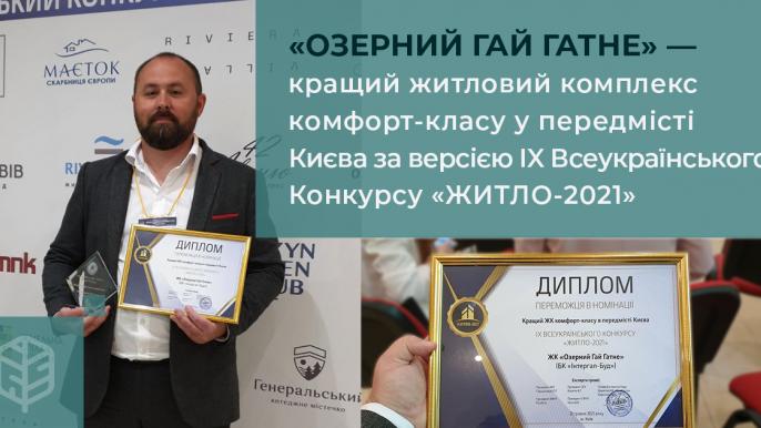 Переможцем у номінації «Кращий житловий комплекс комфорт-класу у передмісті Києва» став наймасштабніший проєкт компанії «Інтергал-Буд» — ЖК «Озерний Гай Гатне».