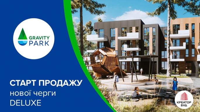 У житловому комплексі Gravity Park від компанії «Креатор-Буд» почалися продажі нової черги — Gravity Park deluxe. Це нові чотириповерхові будинки, які будуються в оточенні соснового лісу у Києві. Особливість нової черги в тому, що в будинках небагато поверхів і обмежена кількість житлових приміщень.