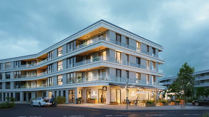 Все коммерческие помещения будут иметь собственный вход с фасадной стороны домов, что будет преимуществом для их владельцев и, в то же время, не будет мешать жителям комплекса, стеклянные панорамные витрины, оборудованы сетями электроснабжения, радио и телефонии, предусмотрены подключение водоснабжения и присоединение к системе канализации. Помещения подойдут для кафе, ресторанов, салонов красоты, магазинов продуктов и непродовольственных товаров, аптек и других коммерческих объектов. Завершение строительства домов первой очереди запланировано на III-IV квартал 2020 года.