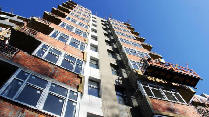 В двух 12-этажных домах жилого комплекса «Кирилловский Гай», который строится корпорацией «УКРБУД» в Шевченковском районе Киева, близятся к завершению внутренние отделочные работы и установка квартирных дверей. В обоих домах уже проложены внутренние инженерные сети, полностью закончена установка окон, и теперь рабочие занимаются фасадом.