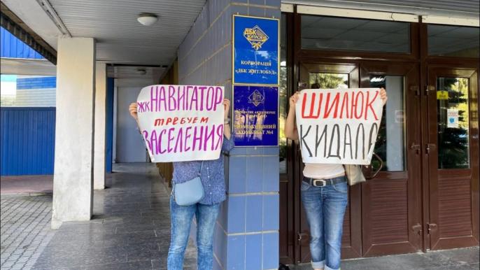 Сегодня, 16 августа, инвесторы ЖК Навигатор под офисом государственной строительной компании «ДБК-Житлобуд» добиваются заселения в свои квартиры, об этом СтройОбзору стало известно с фейсбук-странички, которую создали обманутые инвесторы.