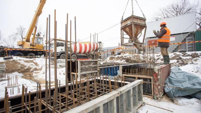 - В МФК OLEGIVSKIY, в 1-й секции, устройство фундаментов выполнено на 10%.