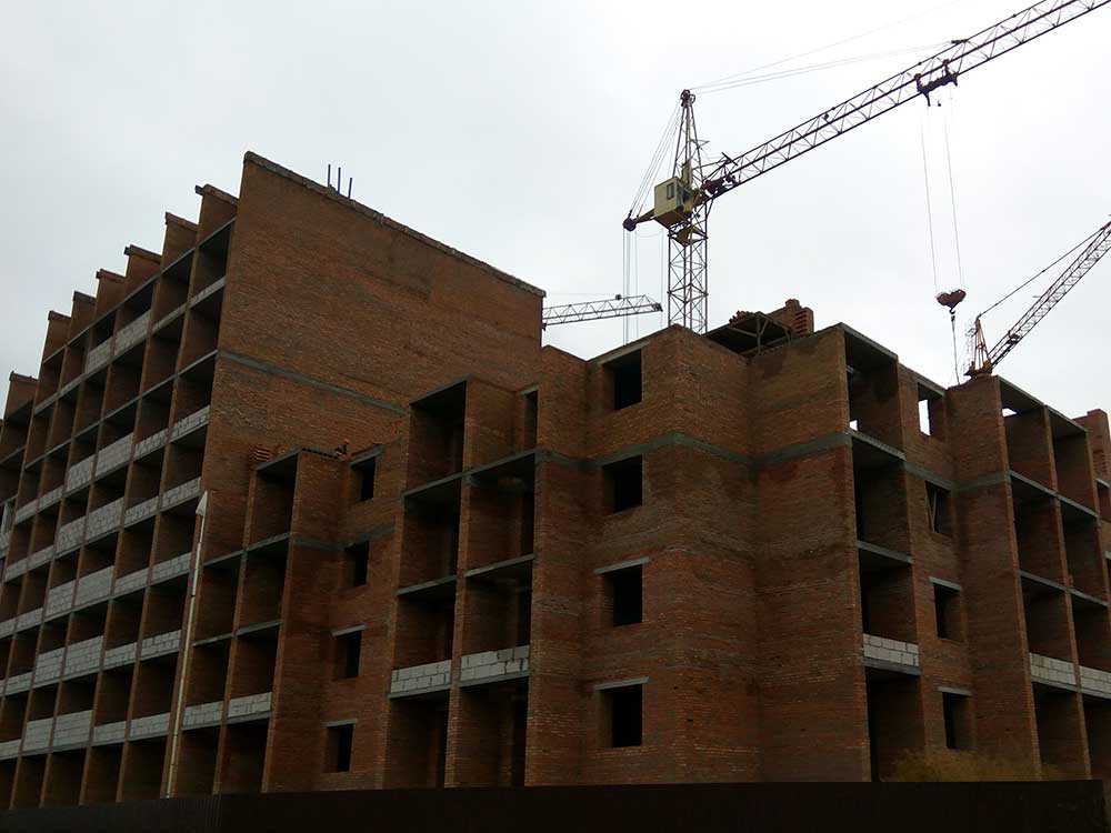 • ЖК Vlasna: дом 2, ведется кладка стен 3-го этажа. Дом 1, внешняя отделка стен фасада и установка балконных ограждений.
