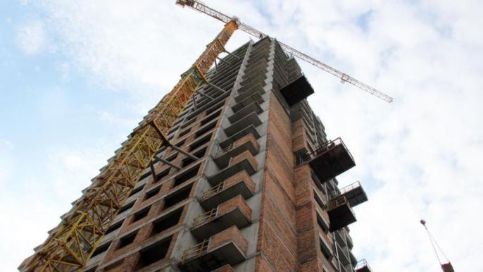 Также строители продолжают кирпичную кладку на уровне 12 и 13 этажей, обустраивают внутренние сети - монтируют водопроводные и отопительные стояки, канализационные трубы и электрические кабели.