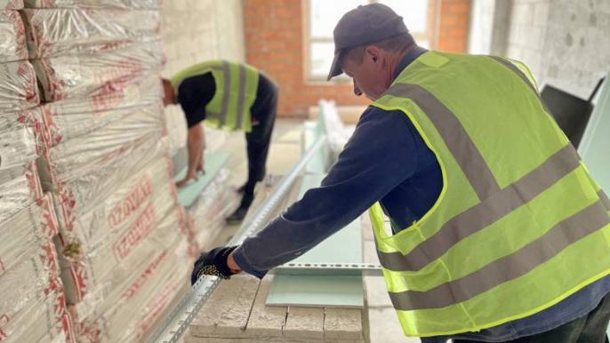 Додатково повідомляємо, що виконується утеплення та оздоблення фасаду, облаштування холодних переходів, проводиться бетонування плити перекриття приміщення трансформаторної підстанції, триває укладання плитки на підлогу в МЗК і техприміщеннях.