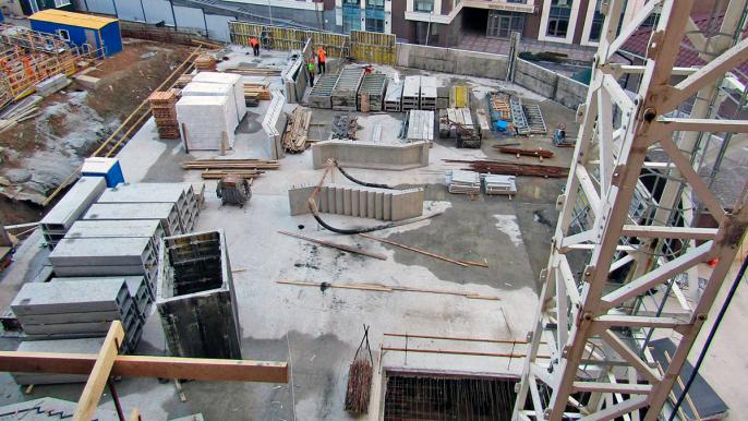 - Монолітні роботи виконуються на рівні 24-го поверху.