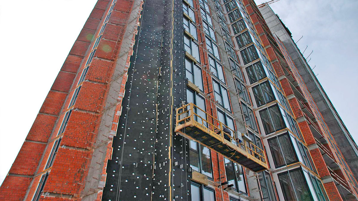 На об’єкті триває активна кладка стін. Паралельно встановлюються віконні конструкції, а також ведуться роботи з облаштування парапетів і покрівлі нижньої тераси. На верхніх поверхах фахівці продовжують монтаж збірних вентиляційних та димовидальних блоків.