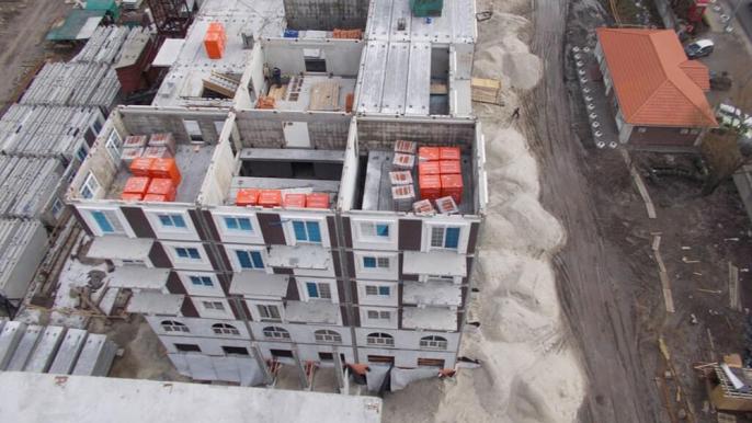 - В Кембридже уже завершили монтаж стеновых модулей ТМ Royal House 6-го этажа.