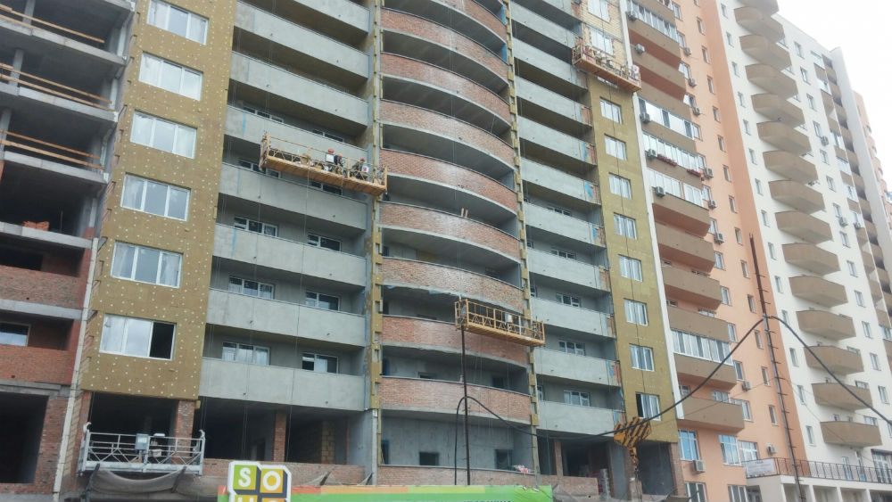 В 5 секции закончены все монолитные работы. Сейчас строители активно занимаются устройством кровли и утеплением фасада.