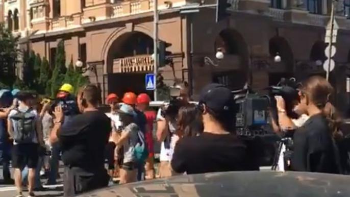 В Киеве активисты на 15 минут перекрыли проезжую часть на Почтовой площади в связи с подтоплением места проведения археологических раскопок в этом районе.