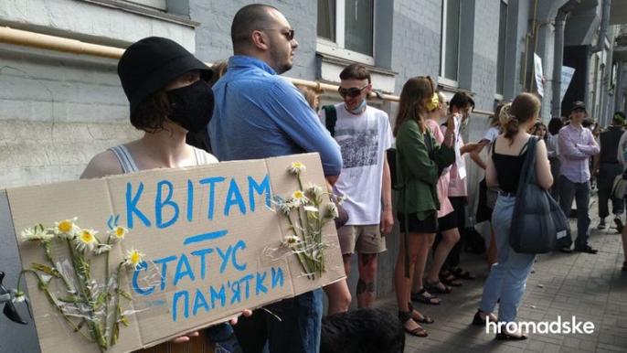 Сегодня, 6 июля, по ул. Сечевых Стрельцов, 49 прошла акция протеста против реконструкции дома «Цветы Украины».