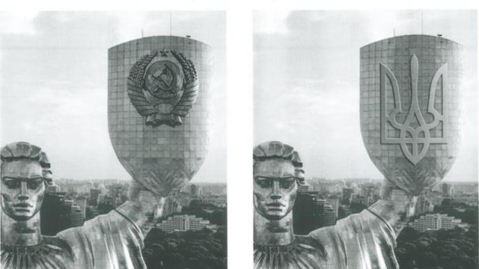Проєктними рішеннями передбачається влаштування Тризуба на щиті монумента, який відповідає зображенню на малому Державному Гербі України. Тризуб замінить старий радянський герб.