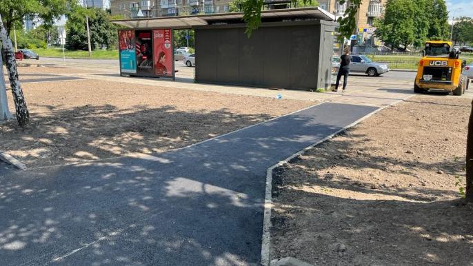 Біля метро «Берестейська» відремонтували тротуар й облаштували сквер