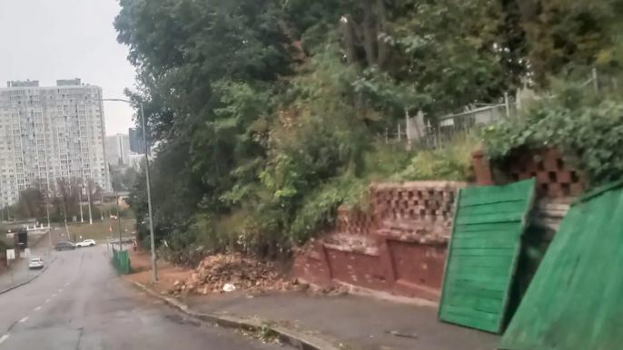 Частина цегляної огорожі Байкового цвинтаря повністю зруйнована.