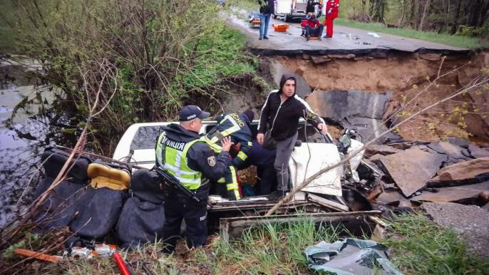 Через обвал дороги автобус з людьми провалився під землю