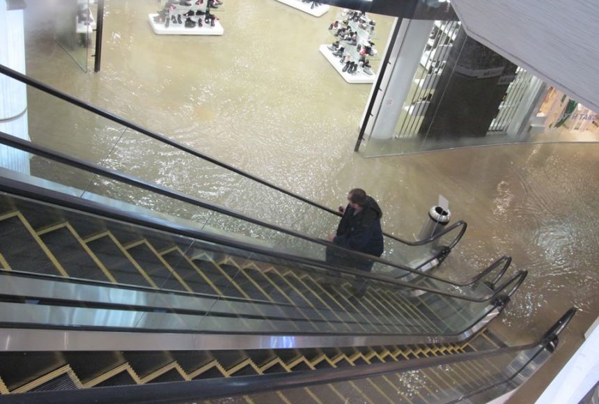 Прорыв теплотрассы произошел сразу в десяти местах. Горячая вода залила весь первый и минус первый этажи самого большого в торгового-центра.