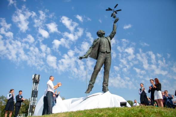 Торжественное открытие состоялось в сентябре. Скульптура Сикорского стоит на постаменте в виде полусферы со стилизованной картой мира. Держится фигура на одной точке - отрываясь от земли в небо. В руке Сикорский держит вертолет.