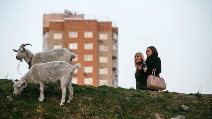 Судя по фото, опубликованным в интернете, ни владелицу фермы, ни самих животных не смущает расположение рядом высоток и жилого городского микрорайона.