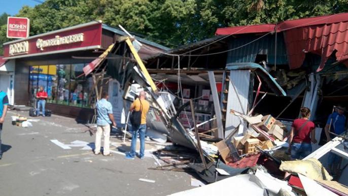 01.07.2016 С шумом и пылью: возле метро "Святошин" демонтируют МАФы