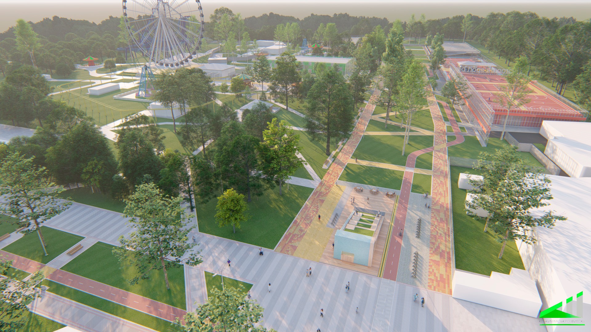 «Обустройство новых аттракционов, создание системы велосообщения, обновления мощения и дополнительное озеленение, освещение, элементы благоустройства, спортивные площадки и фонтаны - все это в предложенном решении», - говорится в комментариях к фото.