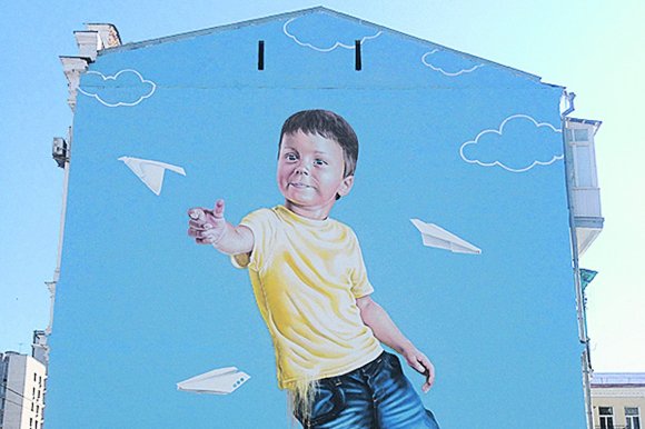 Муралы на фасадах домов вскоре могут стать визитной карточкой Киева. Огромных уличных картин в столице уже сегодня более десятка, и художники не собираются останавливаться. Так, на Стрелецкой уже появился портрет Леси Украинки, на Горького — мальчик с самолетиками, а на Большой Житомирской — Георгий Победоносец. Следующие муралы будут в спальных районах.