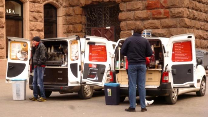 Поэтому до проведения последних торгов все автомобили должны будут покинуть указанные зоны. Речь идет о кофе-машинах. Что касается «шаурма-автомобилей», то в столичной мэрии напомнили: они в принципе не могли участвовать в аукционе на места в центральных зонах исходя из принципиальной позиции департамента благоустройства.