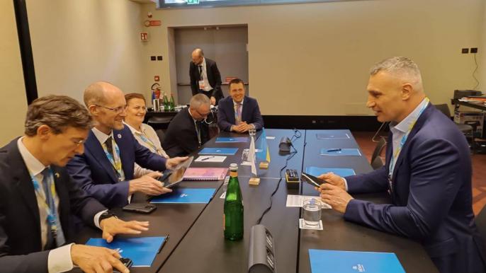 Также на полях Ukrainian Recovery Conference мэр Киева встретился с вице-президентом Европейского Инвестиционного Банка Терезой Червинской. Говорили о реализации общих инфраструктурных проектов в Киеве.
