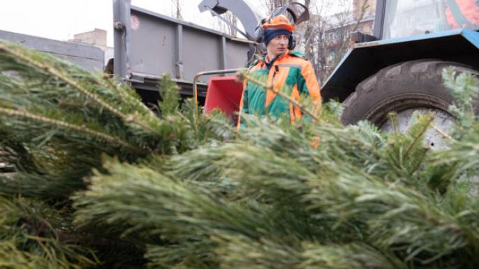 Із пунктів збору ялинки та сосни потрапляють на екологічну утилізацію. Там їх подрібнюють на щепу і потім використовують для мульчування лунок молодих дерев. Це робиться для збереження вологи влітку і захисту від перемерзання коренів рослин у холодну пору року.