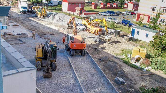 Рабочие уже построили металлический каркас и плиты перекрытия пристройки. Перевели тепловые сети и внутренние сети электроснабжения, внешние сети бытовой и дождевой канализации. Частично устроили системы вентиляции, пожарной сигнализации, автоматизации и диспетчеризации, связи и сигнализации. Выполнили облицовку входов, завершили строительство сантехнического блока и подвальных помещений административного блока. Утеплены кровля на входных группах манежа. Проведено наружное освещение и благоустройство территории.