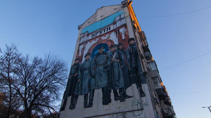 В Киеве, на ул. Большая Васильковская № 111/113 появился мурал, посвященный бою под Крутами 1918 года.