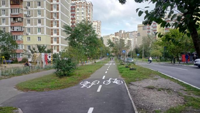 В Деснянском районе, на бул. Леонида Быкова, обустроили двустороннюю велодорожку.