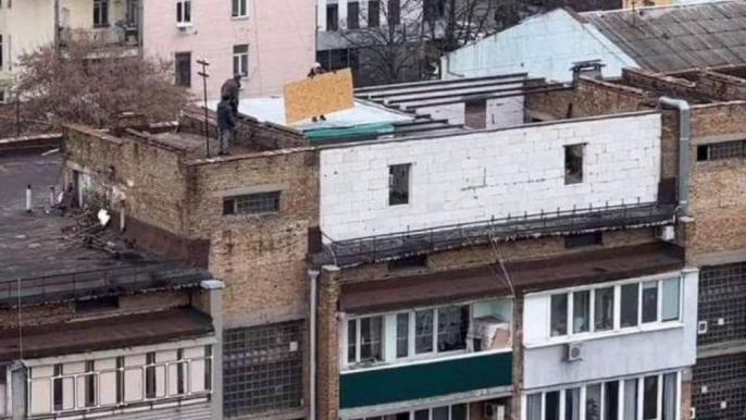У центрі Києва невідомий розпочав будівництво на даху багатоповерхового будинку.