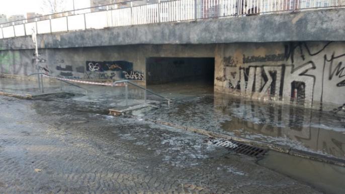 На Героев Днепра затопило подземный переход (видео)