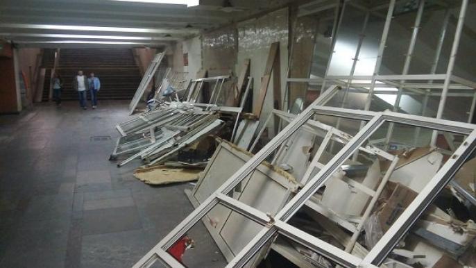 В переходе на ст. м. "Лесная" демонтируют МАФы.