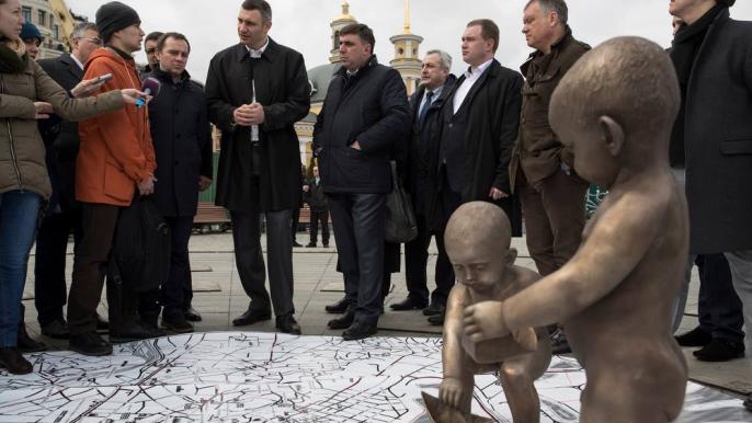 Скульптуры четырех детей, которые запускают бумажные кораблики по Днепру, установят на Почтовой площади.