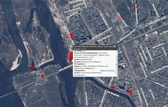 На сайте градостроительного кадастра Киева жилой комплекс на Никольской Слободке "Солнечная Ривьера" получил статус "самострой".