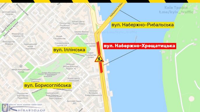 Роботи виконує КП ШЕУ Подільського району на ділянці від Гаванського мосту до вул. Борисоглібської.