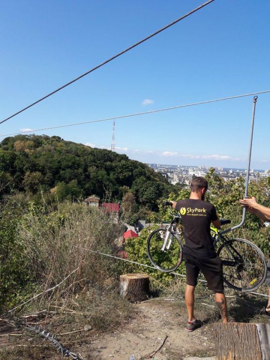 Между Замковой горой и Уздыхальницей над Андреевским спуском обустраивают канатную дорогу, по которой можно будет проехаться на велосипеде.
