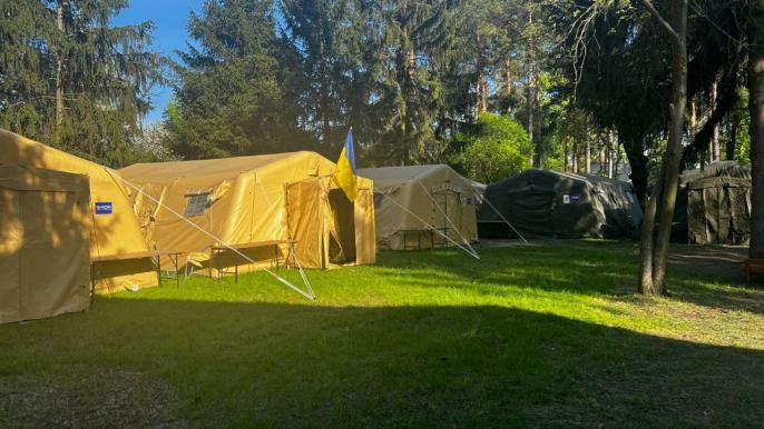 Так, на базі санаторію «Дубки» зараз облаштовано 70 місць у наметах і ще 120 у кімнатах санаторію. Також організовано роботу медпункту та їдальні.