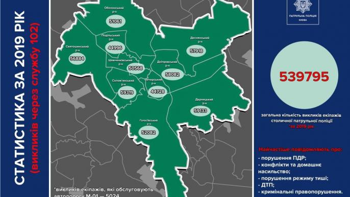 Из 10 районов столицы чаще всего правоохранителям на протяжение 2019 года приходилось выезжать в Соломенский – 59 319 раз.