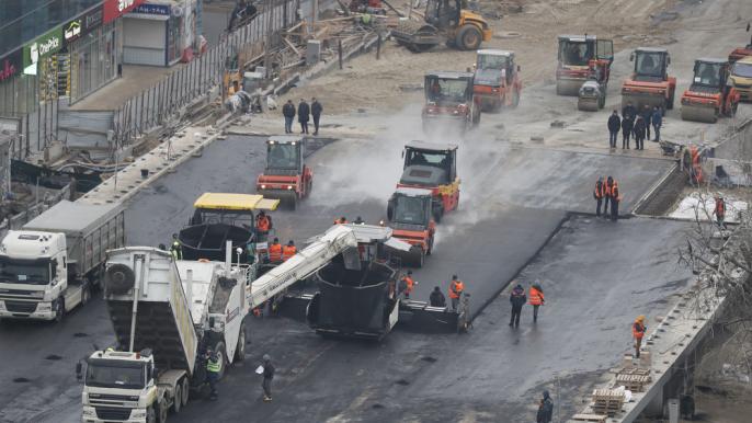 Дорожники начали асфальтировать Шулявский путепровод.