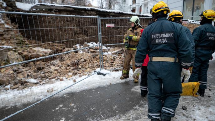 Під час ремонту опорної стіни для утримання ґрунту на вул. Лютеранській в Печерському районі стався обвал.