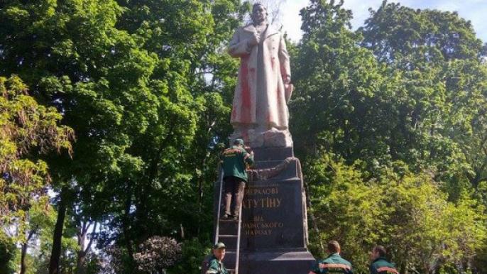 В Мариинском парке вандалы облили красной краской памятник генералу Ватутину, передает СтройОбзор, со ссылкой на "112".
