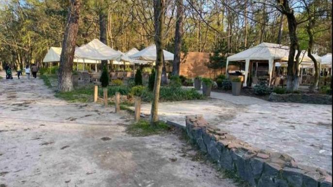 Одне зі столичних товариств самочинно побудувало кафе на земельній ділянці площею 0,17 га, вартістю 8,5 млн грн, яка відноситься до природно-заповідного та водного фондів. Регіональні ландшафтні парки, як і ландшафтні заказники належать до природно-заповідного фонду України, а чинним законодавством заборонено їх використання під розміщення закладів комерційного призначення, а тим більше – під будівництво.