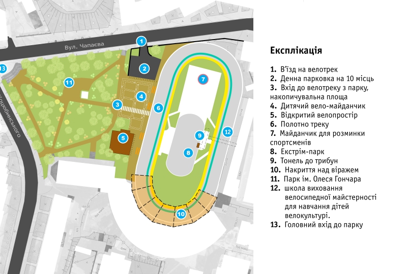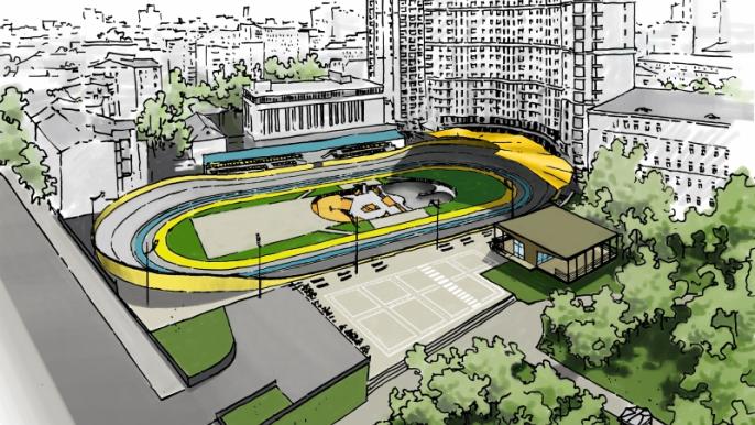 По словам Дениса Пивнева, директора КП «Киевский центр развития городской среды», который представил концепцию обновления велотрека, основная идея инициативы - максимально сохранить киевский велотрек в том виде, в котором он есть сегодня. «На базе велотрека мы предлагаем создать Центр велосипедной культуры с детским веломайданчиком, школой воспитания велосипедного мастерства и экстрим-парком. Объединение пространства сквера им. Гончара с территорией велотрека откроет вход для всех желающих. Предлагается также создать публичное пространство для велосипедистов, доход от которого пойдет на развитие велотрека. Главное, что концепция не предусматривает на территории объекта сплошной коммерции. Финансирование восстановительных и реставрационных работ должно происходить за счет меценатов», - отметил Денис Пивнев.