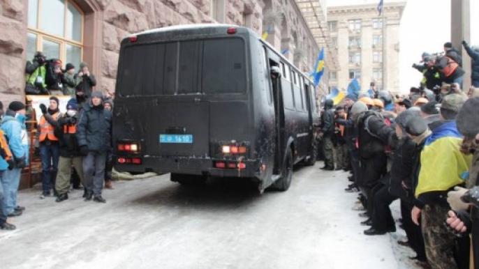 За два часа на площади перед зданием собрались тысячи людей которые не дали бойцам Беркута выйти из автобусов. В 11 часов автобусы отъехали от здания КГГА .