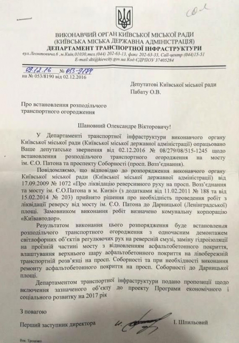 Александр Пабат также опубликовал подтверждающий информацию документ КГГА.