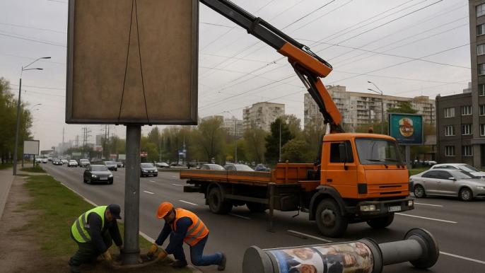 Триває демонтаж незаконних наземних рекламних конструкцій