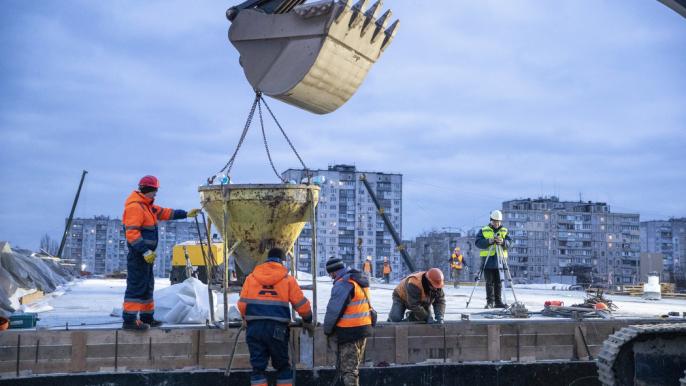 У Києві тривають роботи на шляхопроводі, що зводять на перетині вулиць Полярної та Богатирської.