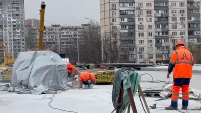 Роботи з будівництва шляхопроводу на перетині вулиць Богатирської та Полярної тривають цілодобово і без вихідних.